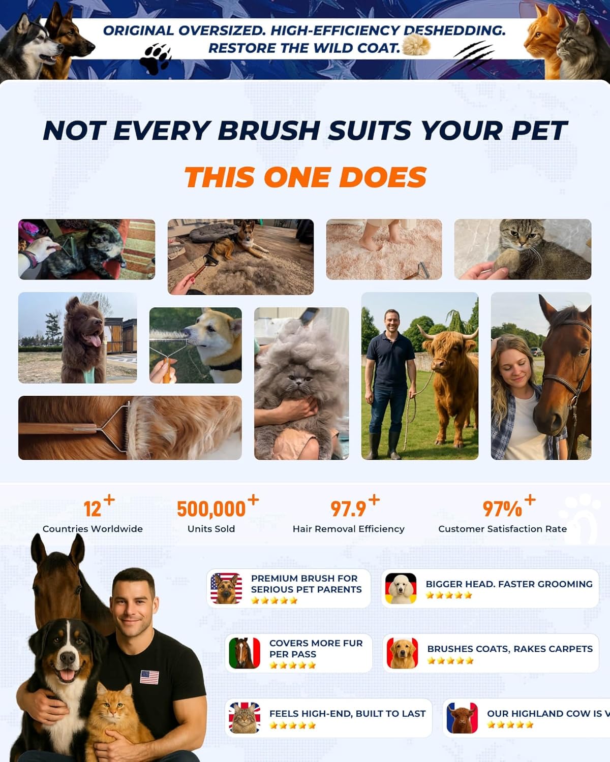 - ✂️【Effortless Mat and Tangle Removal】Easily remove stubborn mats and tangles with KIZO ESLO️ professional-grade extra larger dog brush for deshedding. Designed for both cats and dogs of medium or long coat length, like German Shepherd, Husky, Bernese Mountain Dog, this professional grooming tool ensures a smooth, pain-free grooming experience, leaving your pet's coat healthy and neat.