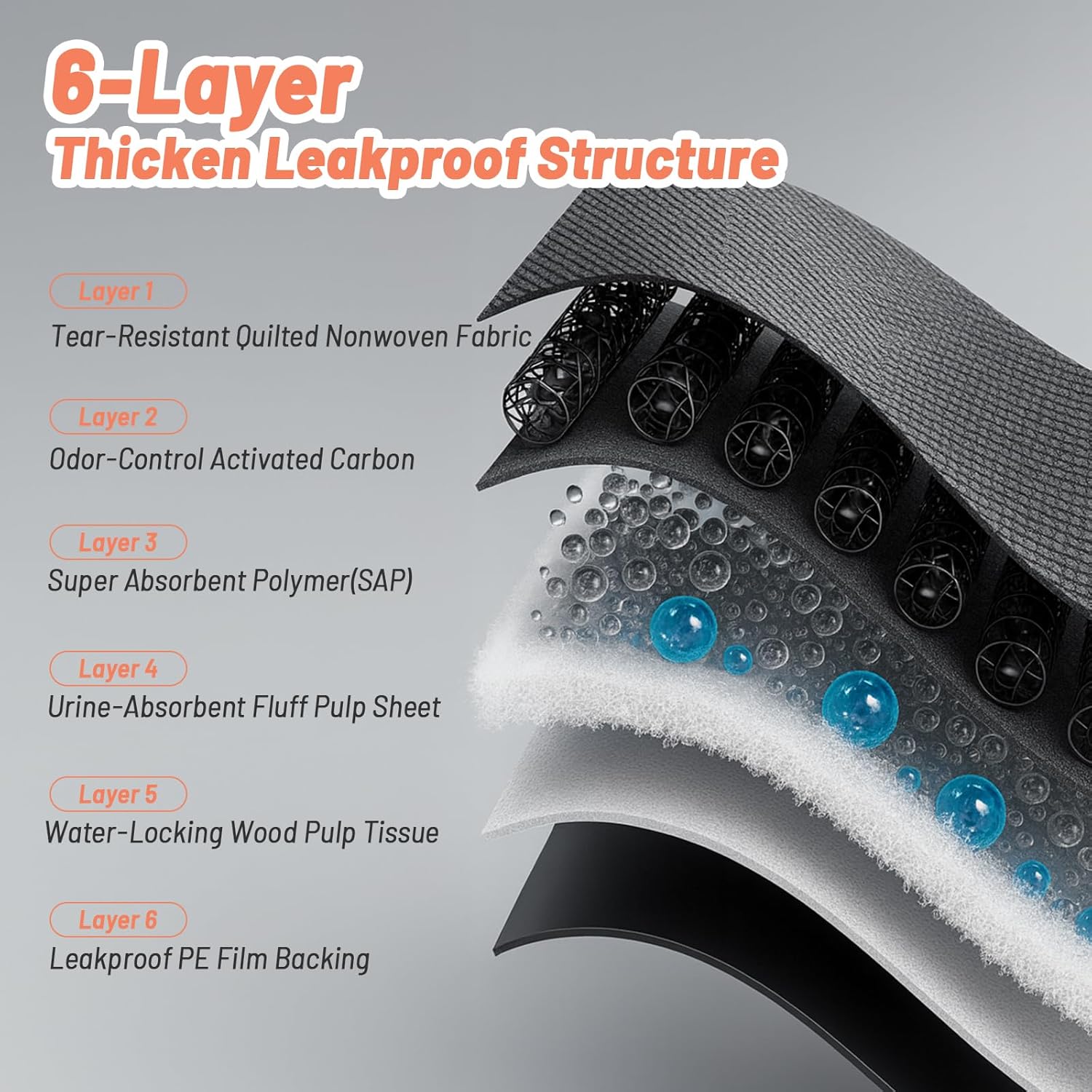 - Activated Carbon for Odor Control: To keep fresh air in your home, we add activated carbon to eliminate odors, It is a natural material known for its odor-absorbing and trapping abilities. When you do pet training or take care incontinence puppy, you won't smell unpleasant odor any more